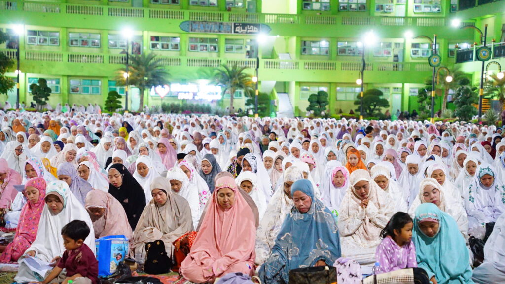 PONOROGO – Suasana religius menyelimuti kawasan Pondok Pesantren Darul Huda Mayak, Ponorogo, pada Kamis malam (25/12). Ribuan santri bersama masyarakat sekitar berkumpul di Masjid Manarul Huda untuk melaksanakan rangkaian Amaliyah Bulan Rajab, yakni Sholat Sunnah Rajab berjamaah.